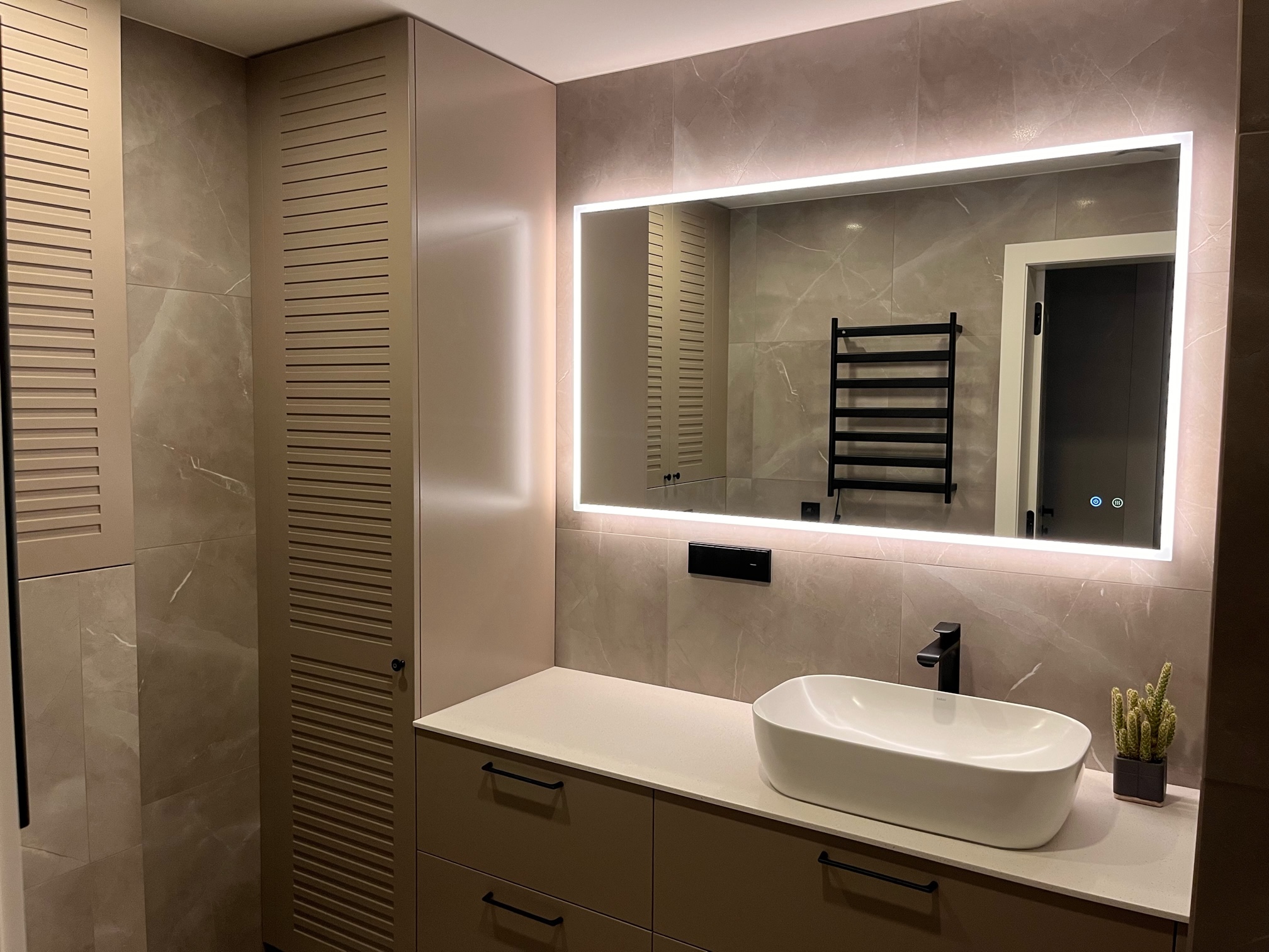 Peeglit saab paigaldada nii vertikaalselt kui ka horisontaalselt, mistõttu see sobib ideaalselt igas suuruses vannitubadesse ja erinevate vajaduste jaoks. Eesmine LED-valgusriba ümber serva tagab ereda ja ühtlase valguse, mis sobib suurepäraselt meigi tegemiseks, raseerimiseks või igapäevasteks ilurituaalideks.