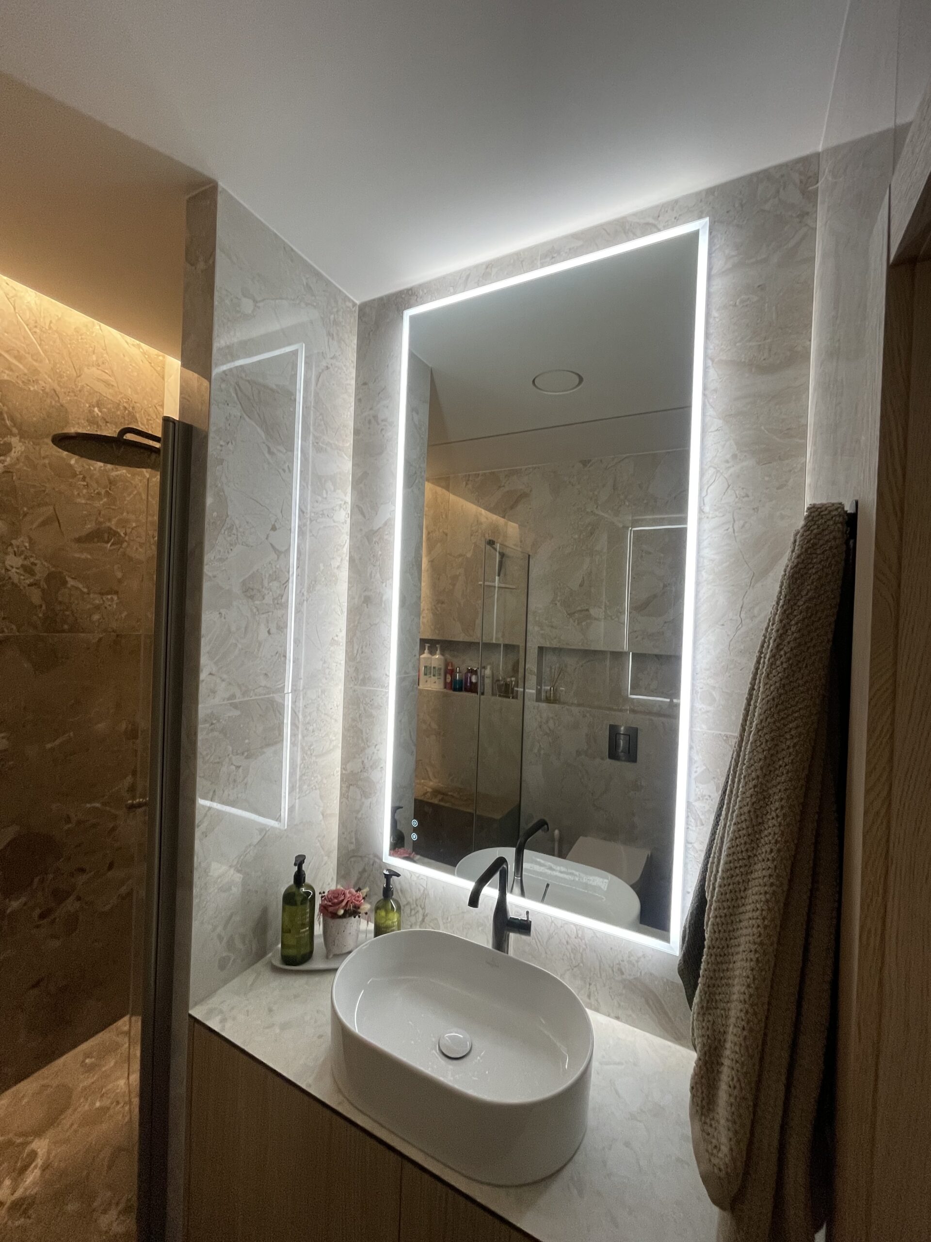 Peeglit saab paigaldada nii vertikaalselt kui ka horisontaalselt, mistõttu see sobib ideaalselt igas suuruses vannitubadesse ja erinevate vajaduste jaoks. Eesmine LED-valgusriba ümber serva tagab ereda ja ühtlase valguse, mis sobib suurepäraselt meigi tegemiseks, raseerimiseks või igapäevasteks ilurituaalideks.