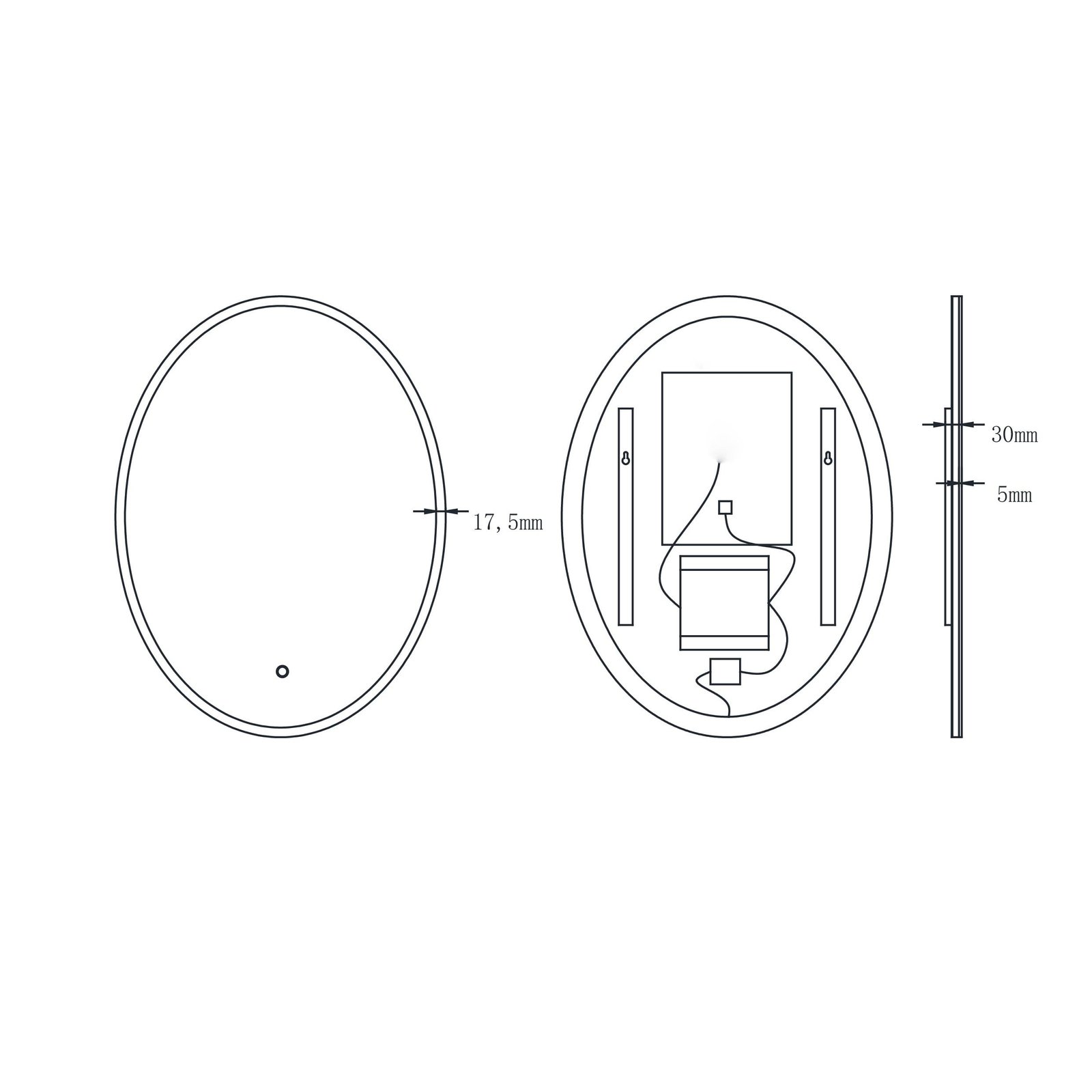 KEIRA 500×700 mm ovaalne LED-peegel esivalgustusega – kompaktne ja elegantne valik teie vannituppa. Kaunis ovaalne kuju ja optimaalne suurus muudavad selle peegli eriti sobivaks väiksematesse ruumidesse, kus iga sentimeeter on oluline.