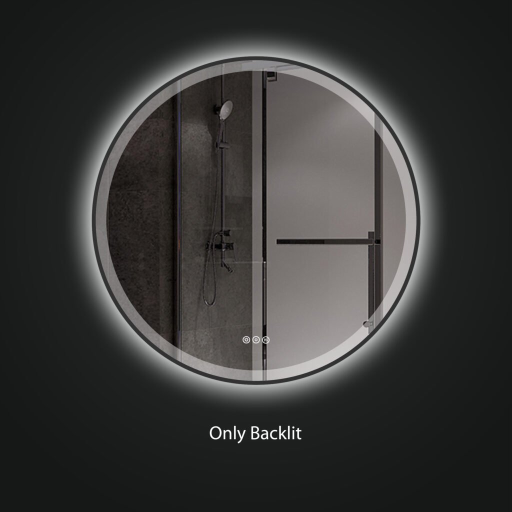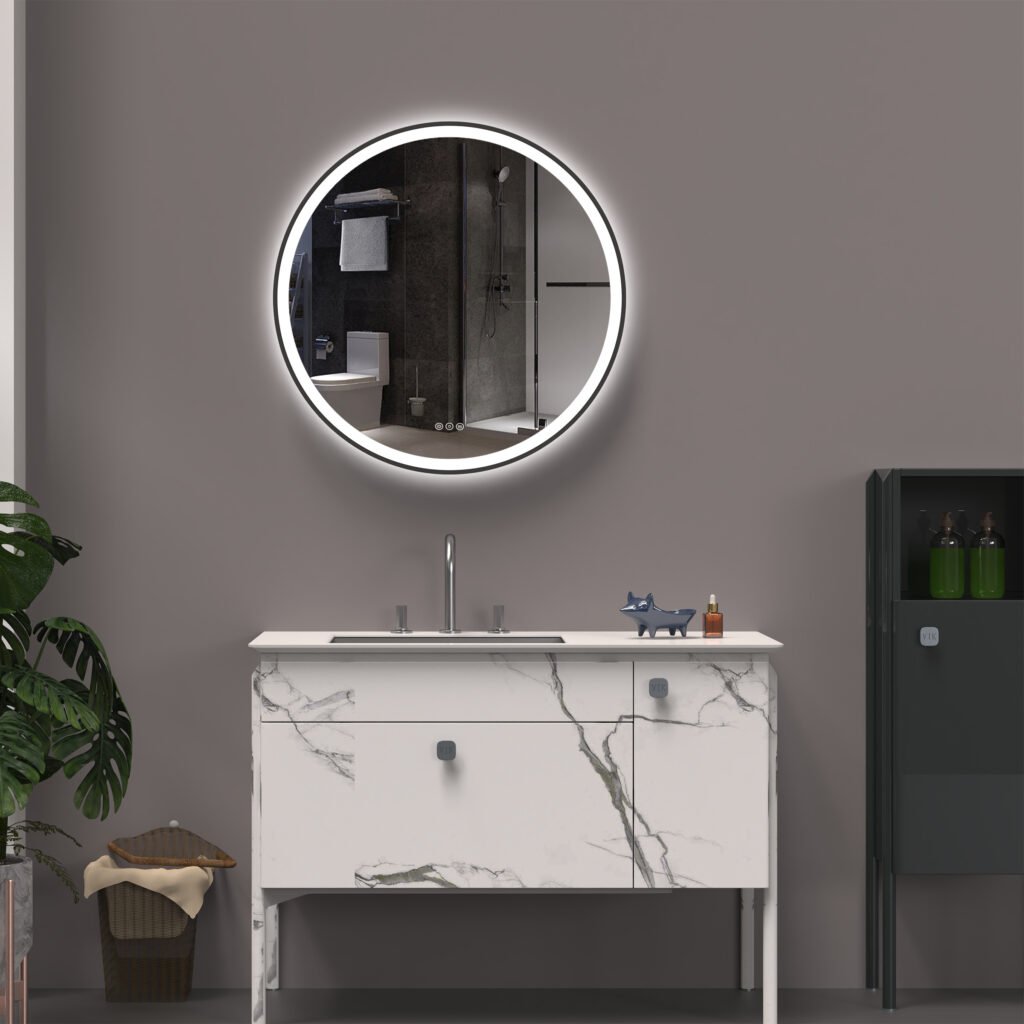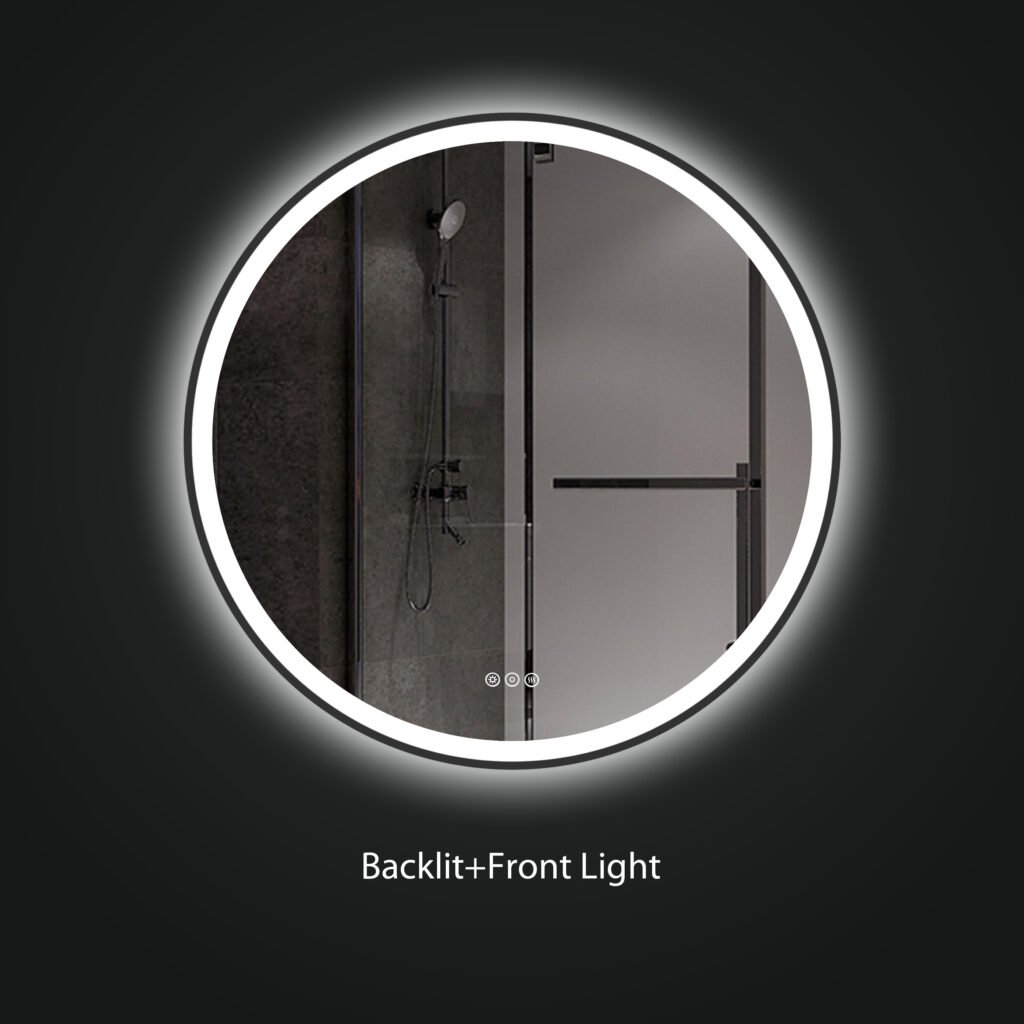 ОРИОН 900 мм круглое светодиодное зеркало С с передним и задним освещением и с черной алюминиевой рамой - современное, высококачественное и роскошное дизайнерское решение для вашей ванной комнаты. Модель сочетает в себе Функция двойного светодиодного освещения и Прочные алюминиевые рамы черного цвета с порошковым покрытиемЭто придает зеркалу минималистичный и элегантный вид.