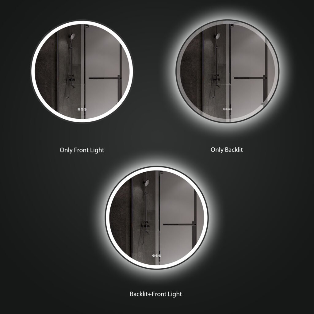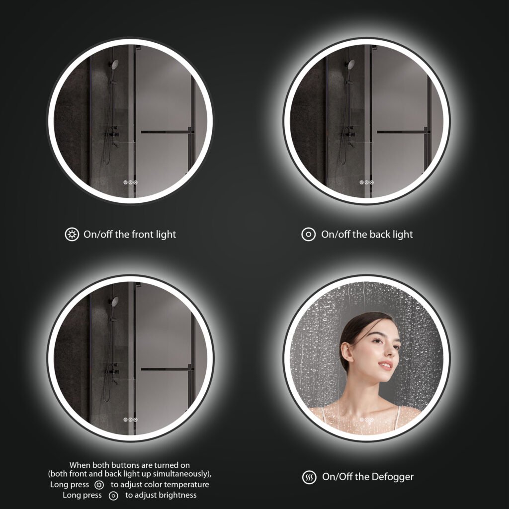 Зеркало изготовлено из изготовлен из высококачественного 5 мм серебряного стекла без меди, с полированными краями и с антикоррозийным покрытием. Светодиодные ленты SMD срок службы 50 000+ часов, подтверждая качество Сертификаты CE, ETL и RoHS.