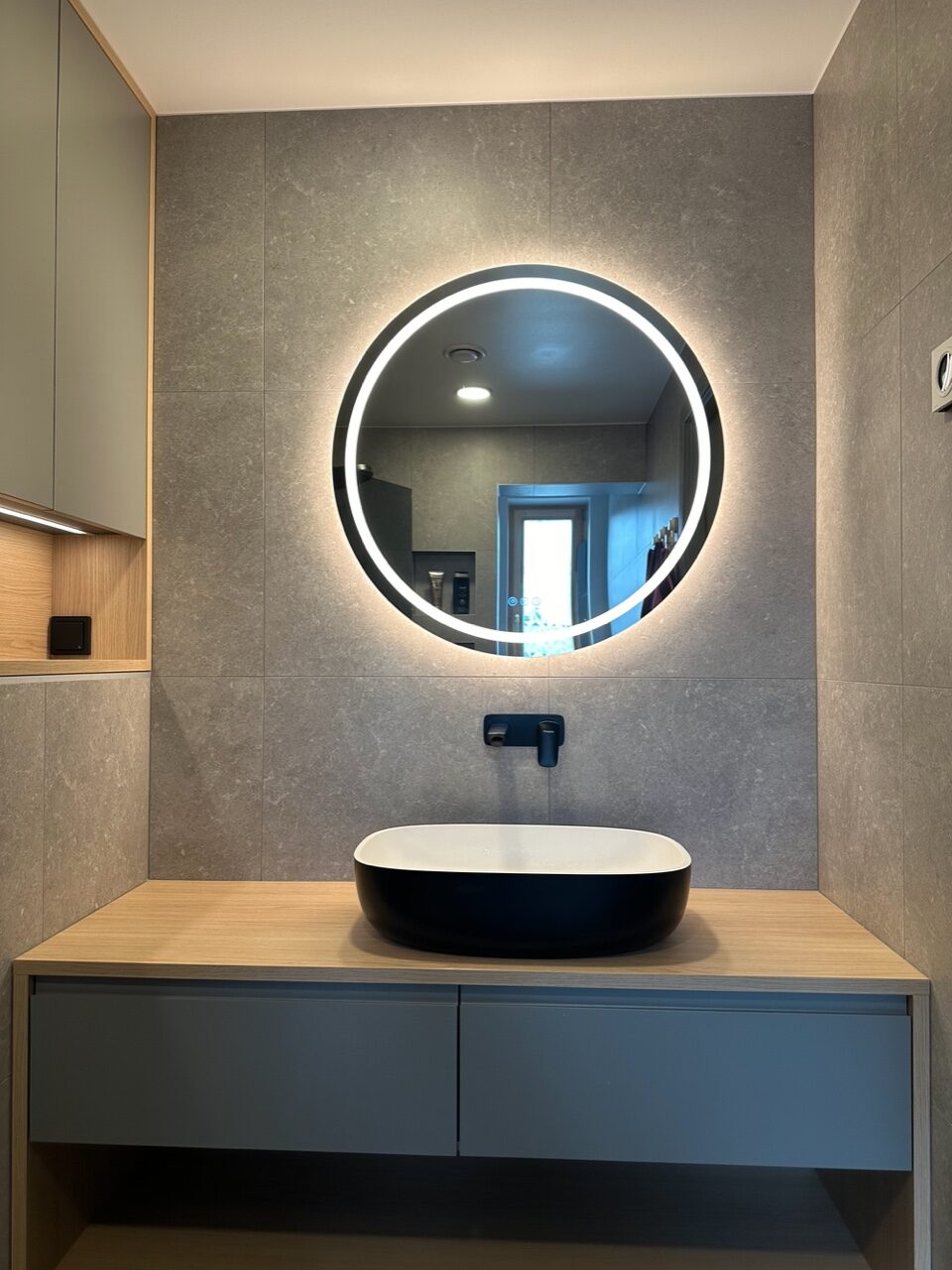 SARA – ümmargune LED-peegel topeltvalgustusega, mis ühendab funktsionaalsuse ja hubasuse teie vannitoas.