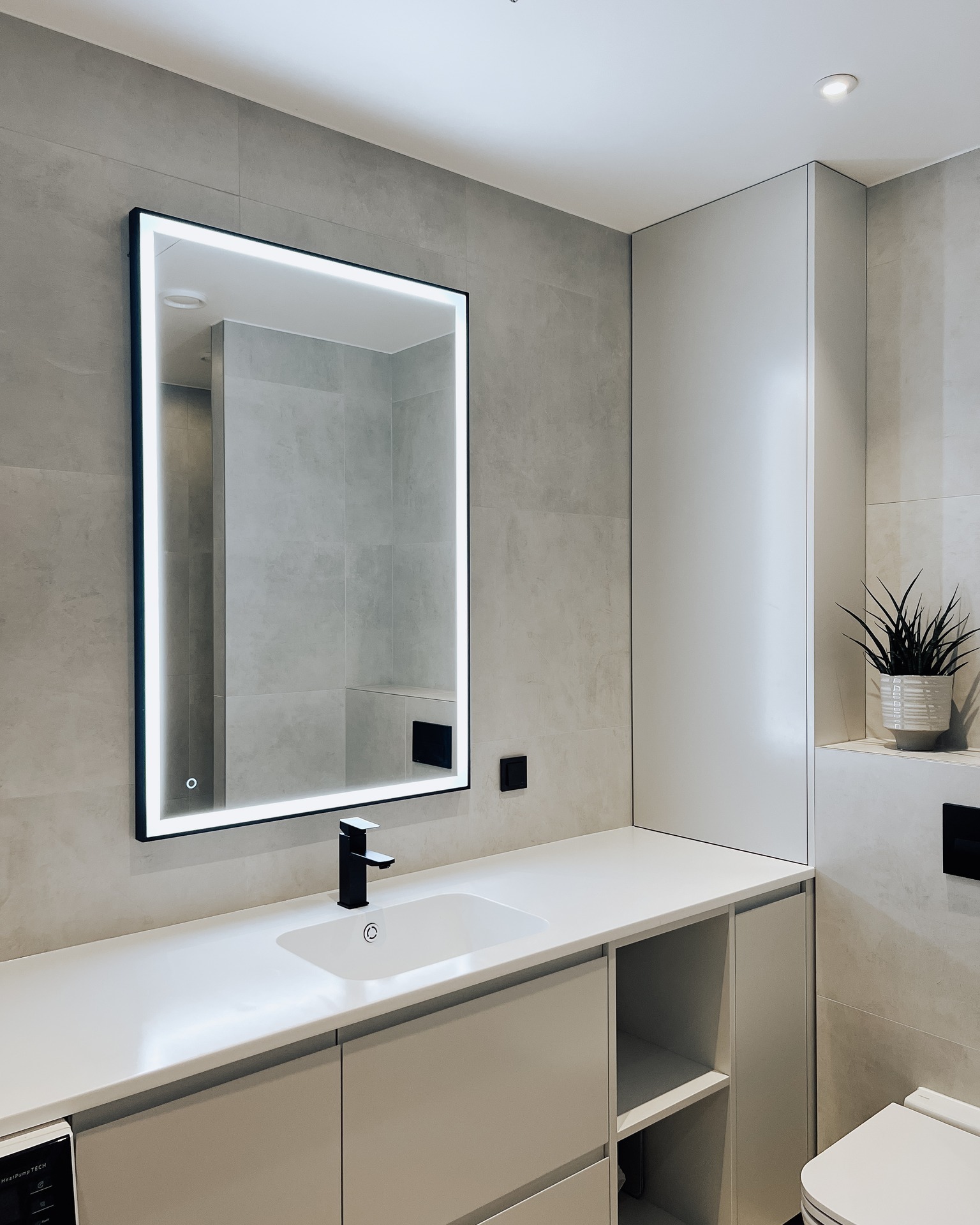 We are very satisfied with the mirror itself, the ambiance the soft led light gives to our bathroom is beautiful. Also, it works so well when we take a shower, no steam is left on the mirror, so you don’t need the extra cleaning from steam spots, it just stays nice and clean. The delivery was also very fast and easy to track. Thank you, team!