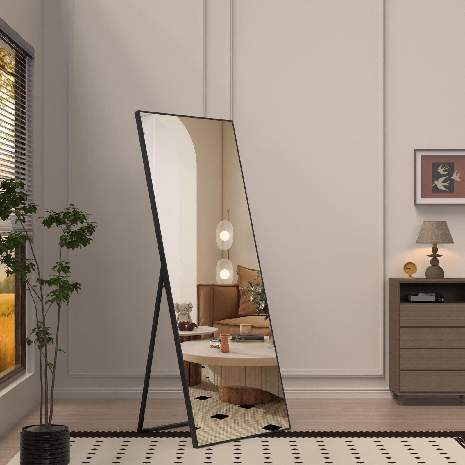 ✓ Turimą veidrodį esant poreikiui galima lengvai perkelti. Jis tinka miegamajam, svetainei, darbo kabinetui, namų sporto salei, ar bet kokiam kitam kambariui.