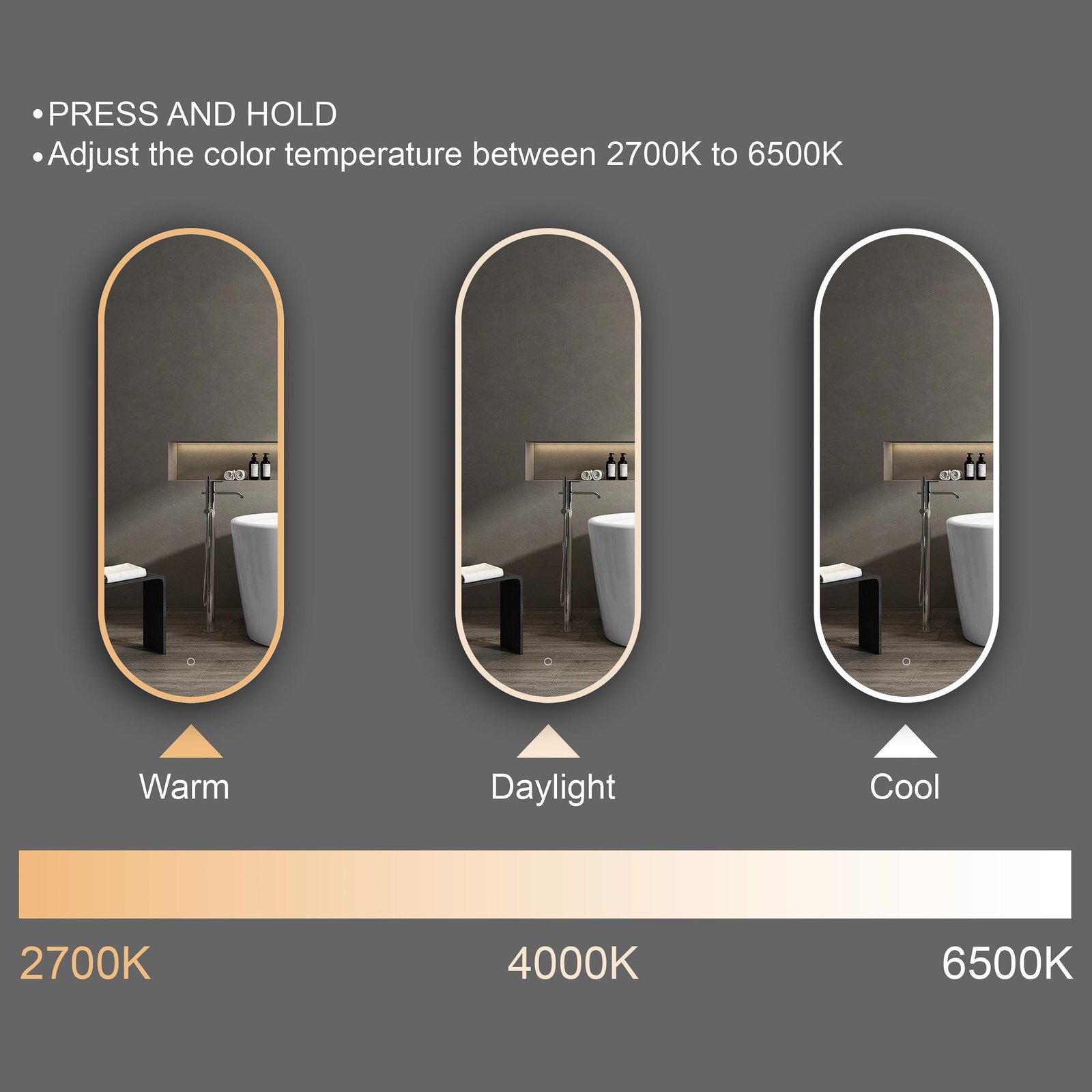 ✓ Šviesos temperatūrą galima pakeisti nuo 2700K iki 6400K, priklausomai nuo veidrodžio naudojimo tikslo ir Jūsų nuotaikos.