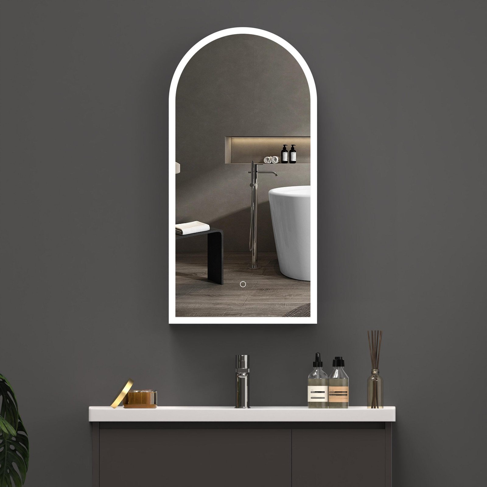 LORA 450×900 mm LED-peegel kapiga – elegantne lahendus, mida iseloomustab kaarekujuline vorm, mis lisab interjöörile peenet luksust ja modernsust. Tänu oma proportsioonidele sobib see suurepäraselt ka väiksematesse vannitubadesse, säilitades samal ajal kapi praktilise mahutavuse.
