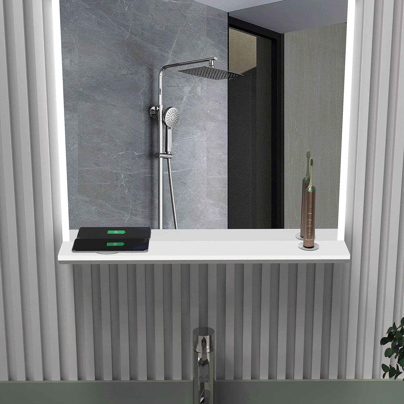 ✓ Integruota nedidelė lentynėlė, patogi pasidėti telefonui, kvepalams, lūpų dažams, dantų šepetėliui.